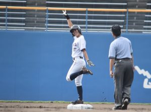 秀明大学は3回、山田ナミと赤井梨音のヒットで一、三塁とするが、西武先発・里綾実の前に後続が倒れて無得点。