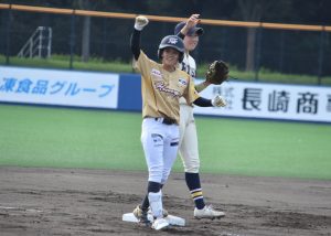 ハニーズは先発・前田祐里から百田陽菜に投手交代。この百田が2死満塁フルカウントとピンチを背負うが、一直に仕留めて同点は許さない。