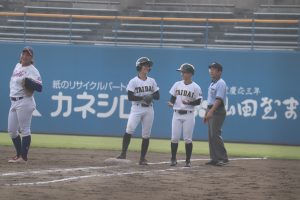 畑中ゆりあがライト前安打で出塁すると盗塁にも成功。このチャンスに児玉椛姫がライトへ二塁打を放って先制に成功。さらに木村睦実と荒川莉子にもタイムリーが出て、この回3点を奪った。