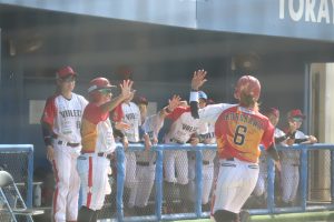 すぐさまその裏に、長田朱也香の三塁打と島野愛友利の犠牲フライでダメ押しの5点目。清水が6回は無失点に抑え抑え4安打1失点にまとめると、最終7回は小野寺佳奈が締めて試合終了。快勝で初優勝まで、あと2勝とした。