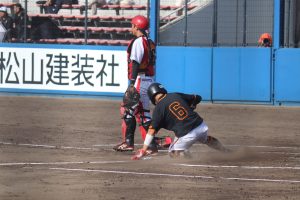 先頭の中村柚葉の四球で出塁すると盗塁を決め、内田梨絵瑠がセカンドゴロを放って中村が三塁へ進塁。このチャンスに東ここあがセカンドゴロを放つと中村が好スタートを切って本塁へ生還。無安打で先制に成功した。