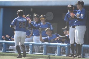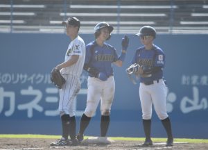 そして3回、神戸弘陵は石井里奈から阿部さくらに投手交代。だが大体大打線は 四球から2死三塁とチャンスを作り、山本一花のタイムリーで2点目を奪う。