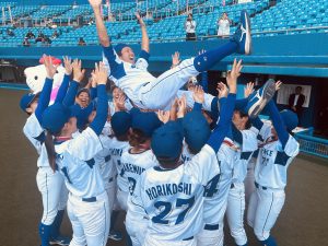 最終7回は好救援を続けてきた竹村理が三者凡退に抑えて試合終了。選手たちは一斉に竹村のもとへ駆け寄って歓喜の輪を作った。また、就任1年目の中﨑雄太監督(元西武投手)は「日々の練習で厳しいことも言ってきましたが、熱くついてきてくれたので、感極まるものがありました」と涙。抜群の勝負強さを見せたエイジェックが3回目の日本一に輝いた。